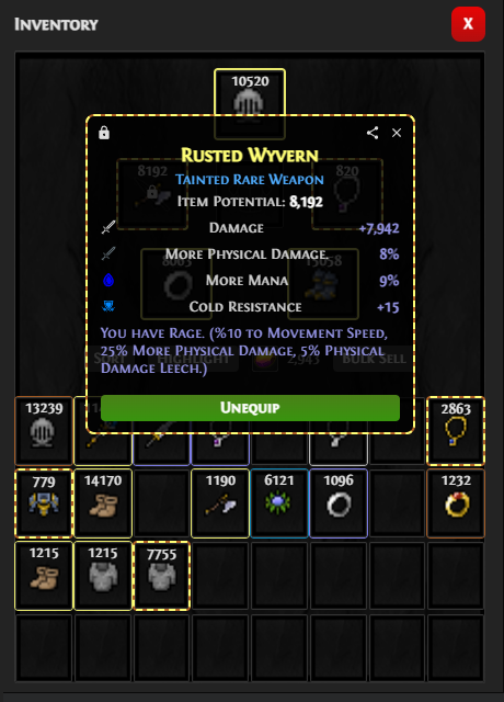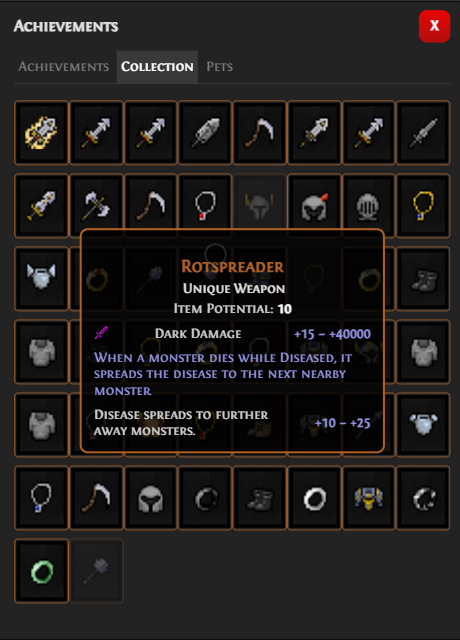 Build enabling unique items with cool effects. You can also take their unique power and apply to other items with Taint system.
